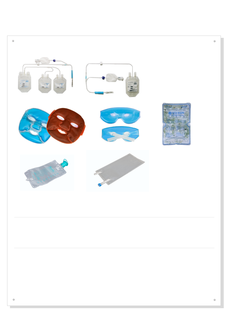 blood bags, urinary drainage bags, pressure and formentation packs, medical filters, etc.